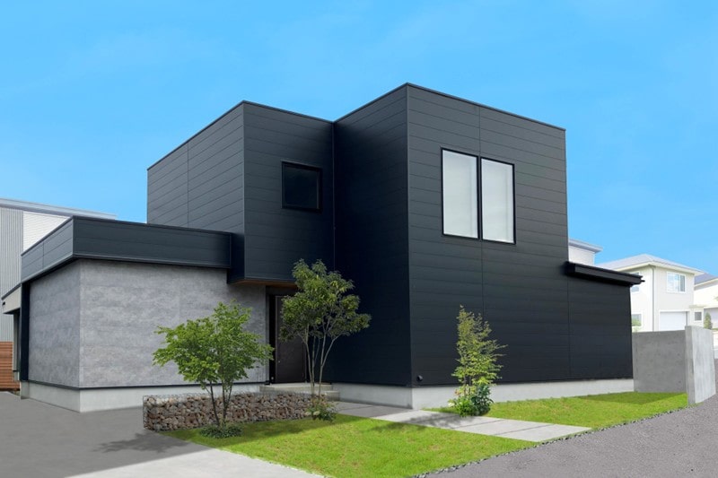 外から玄関が見えないことで、防犯性にも、デザイン性にも優れた外観になりました。
