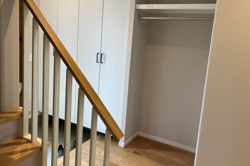 手洗い場と同様に、玄関に入ってすぐにファミリークローゼットがあると着替えたり、荷物を置くスペースがあると花粉がついた衣類や荷物をお部屋の中に持ち込みにくくできます。