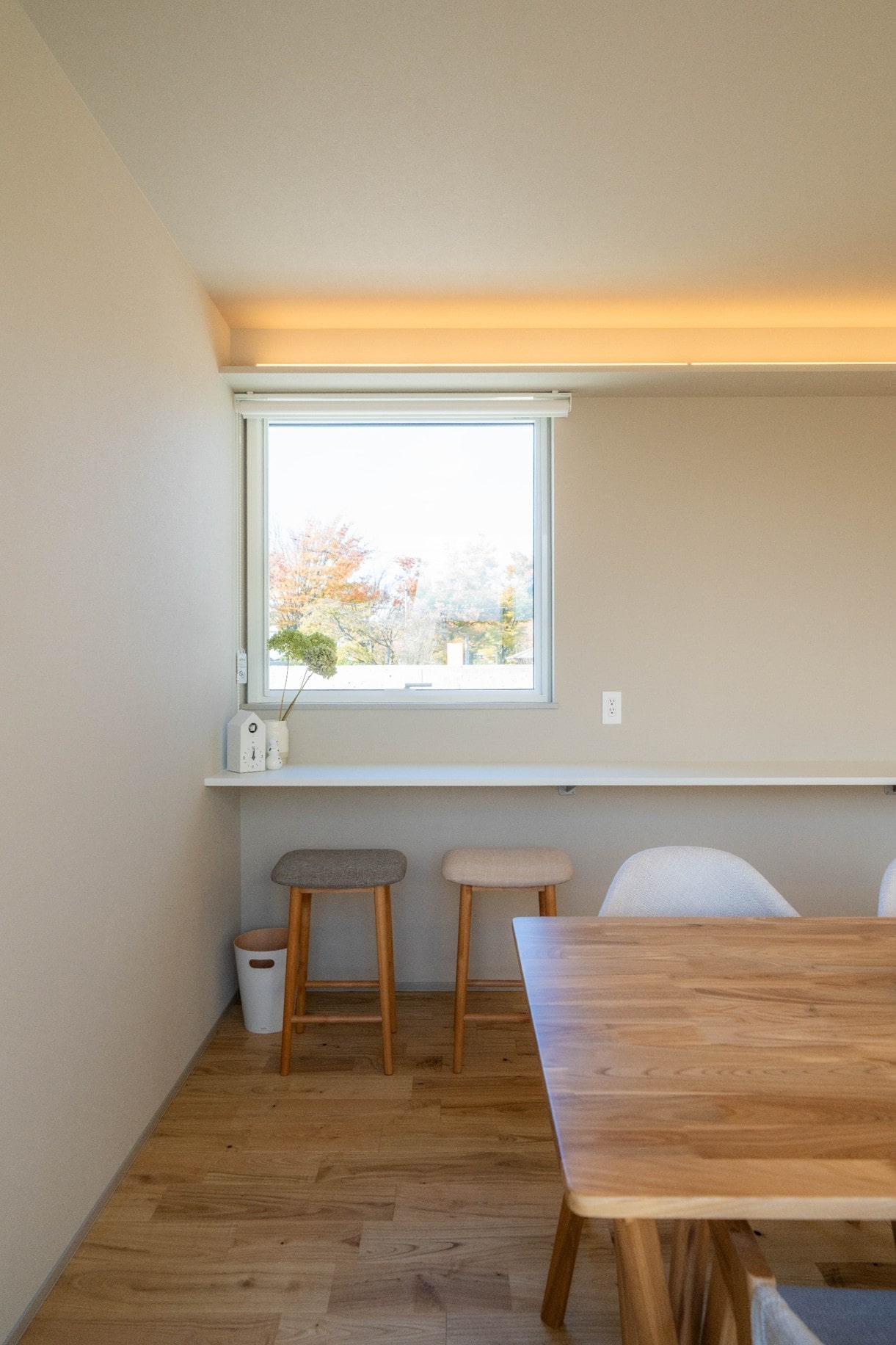 朝のひとときにヌックに腰掛けると、目の前のスクエア窓から朝日が差し込み、1日がスタートです