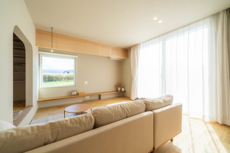 南側の中庭からお部屋全体に光を差し込む明るいリビング