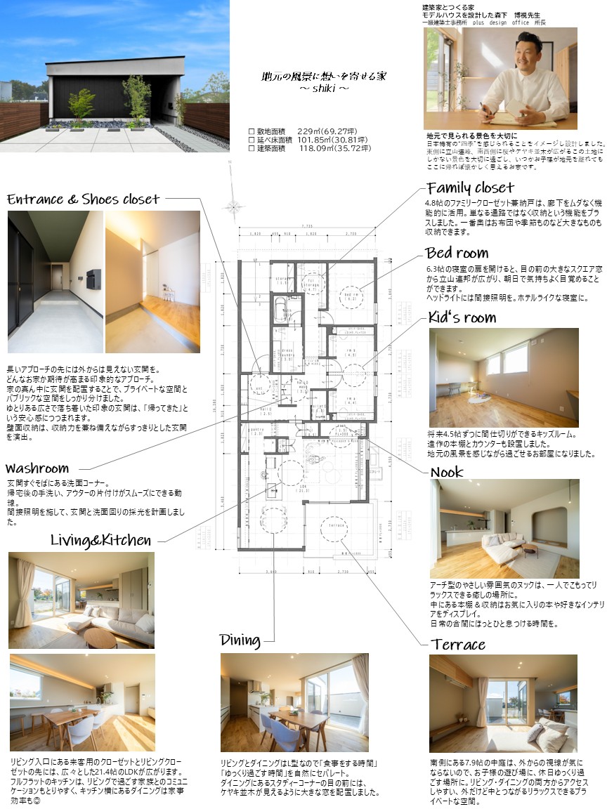 ケヤキ並木や立山連峰を望む“四季”を感じる『平屋モデルハウス』です。