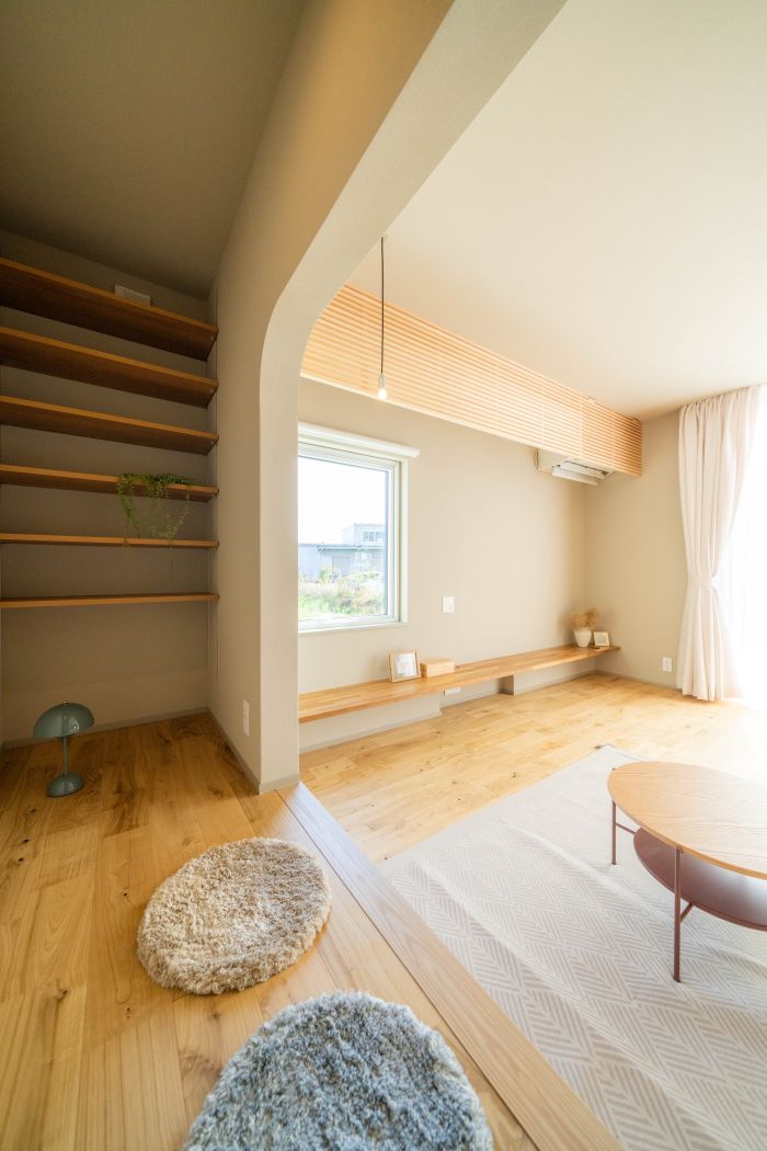 この土地は、東側には立山連峰、南西側にはケヤキ並木が広がる自然豊かな場所にあり、この土地にしかない景色を大切に過ごしてほしいという思いから、「shiki」をコンセプトにした、景観を最大限に生かしたおうちとなりました。