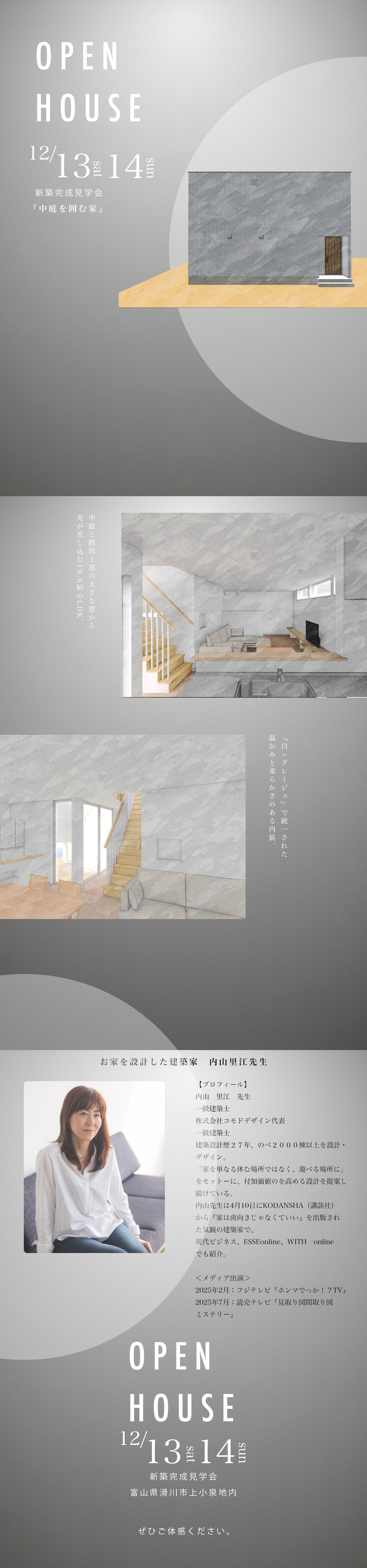 【滑川市・中庭を囲む家】完成見学会に予約する