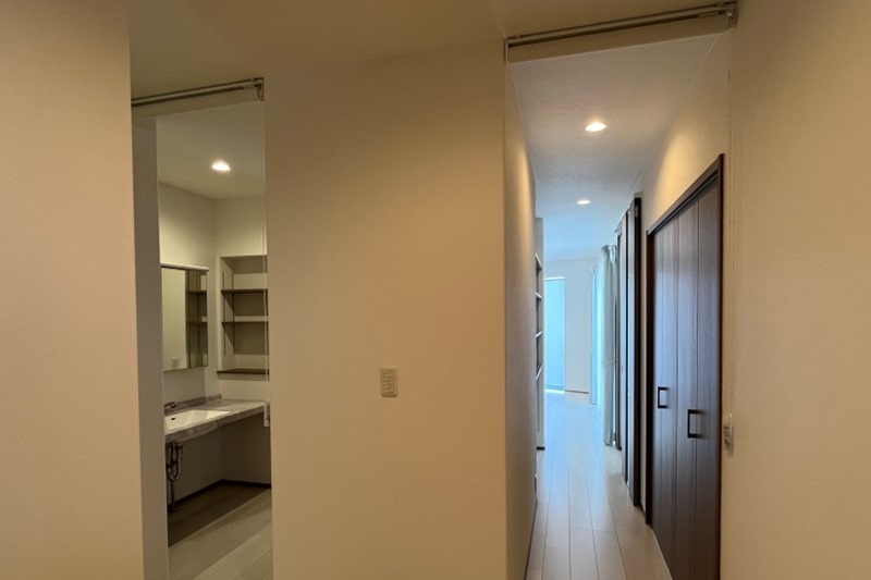 左手に進むと、帰宅後すぐ手洗いができる洗面コーナー、ガス衣類乾燥機『幹太くん』設置予定のランドリールーム、1.25坪の浴室など、プライベートな空間です。