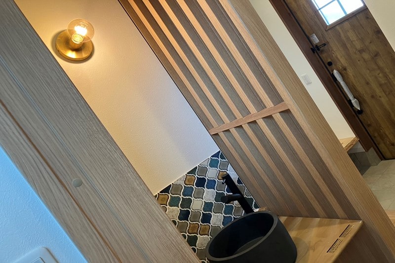 側面には縦格子を採用し、視線をやわらかく遮りながら、どこか和の雰囲気を感じられる仕上がりになりました。