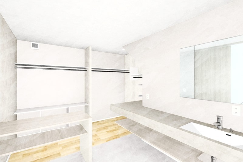 4.0帖のウォークインクローゼットと3.0帖のランドリールームがつながる、効率的な家事動線。