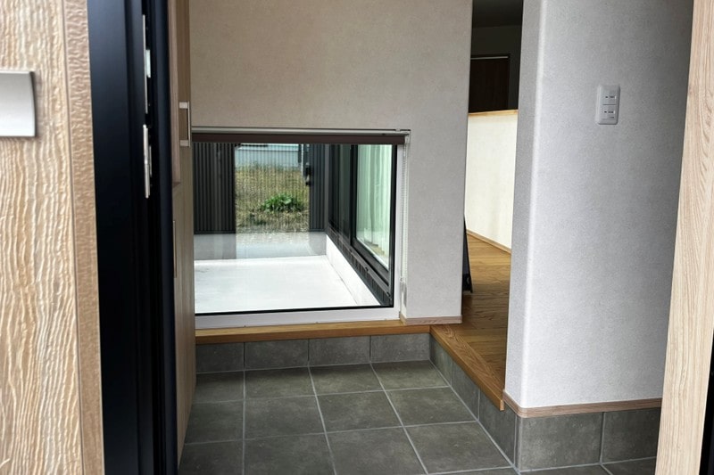 お天気に左右されず外での暮らしも楽しむ、14帖のタイルテラス!