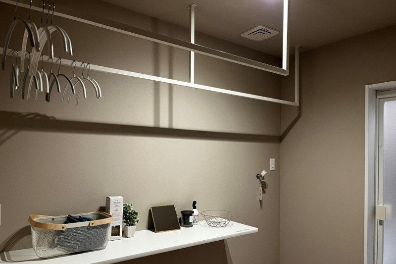 共働きのご夫婦や子育て世帯の方は、生活スタイルに合わせられる、室内のランドリールームや、物干しスペースはオススメです。