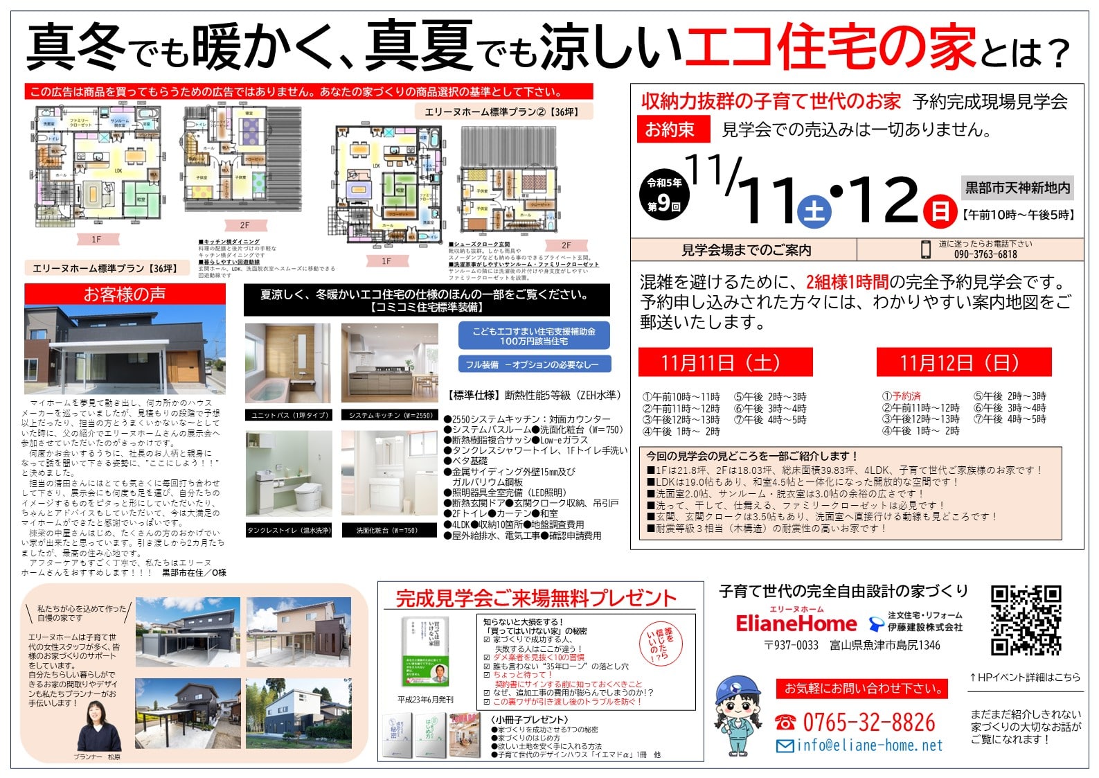 11月11日(土)・12日(日)の2日間、【黒部市天神新地内】にて、お施主様のご協力をいただき、