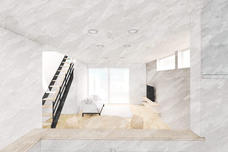 17帖のLDKは北側の安定的な光が気持ちよい穏やかなリビングに。
