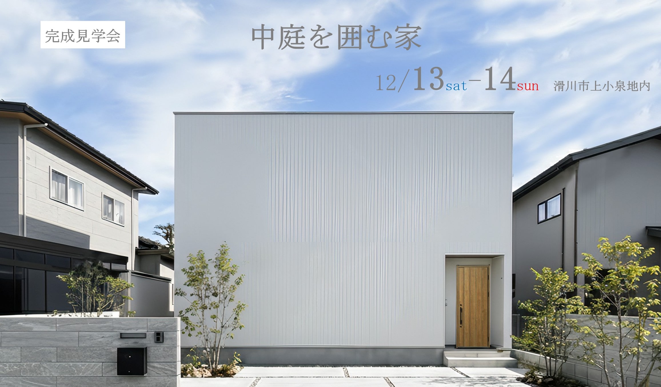 分譲地の一画で住宅に囲まれた立地でも、日当たりや開放感を取り入れつつ、プライバシーはしっかり守る『中庭を囲む家』の完成見学会を開催いたします。お客様の暮らす土地を最大限に引き出した設計のお家です!