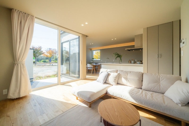 南側の中庭からお部屋全体に光を差し込む明るいリビング