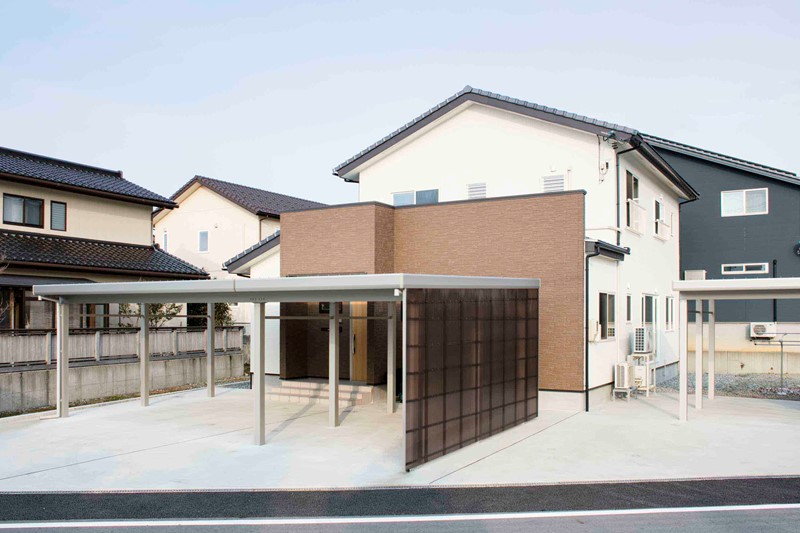 外観はブラウン系のウォールがアクセントとなり、外からの視線を遮りプライベート空間を確保しました。